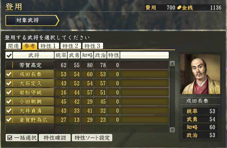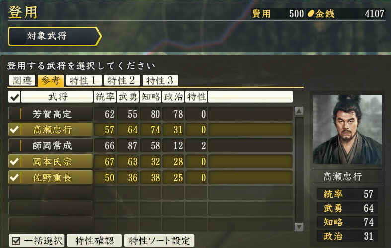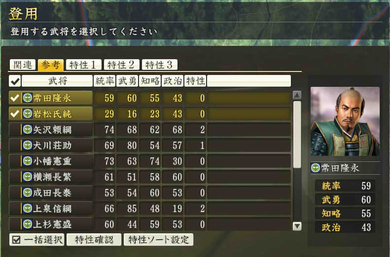 信長の野望 創造PK 新勢力プレイ 小机家 その4 1545年3月 米に余裕がないので9月までは内政に励むことに。 本当は北側の唐沢山、壬生、宇都宮あたりを落としたいところだけど、 里見が動いた以上、迎撃できる米はとっておかないといけない。 そしていまさら政策が使えるようになっていることに気づく、 やっちまったー! 夫役強化を施行。これで労力が13から19に増加。 1545年5月 【ログ】深志城の小笠原家が武田家によって滅亡。 小机の商業400達成。 |