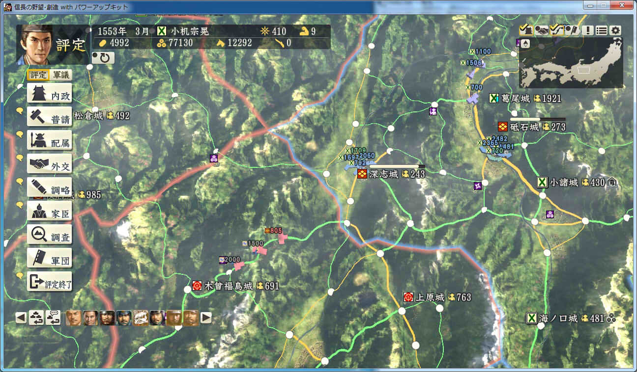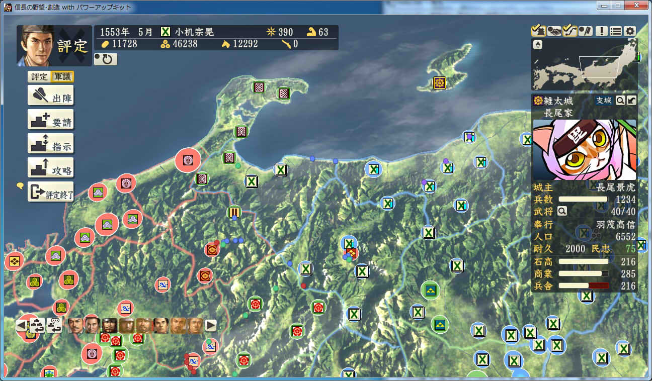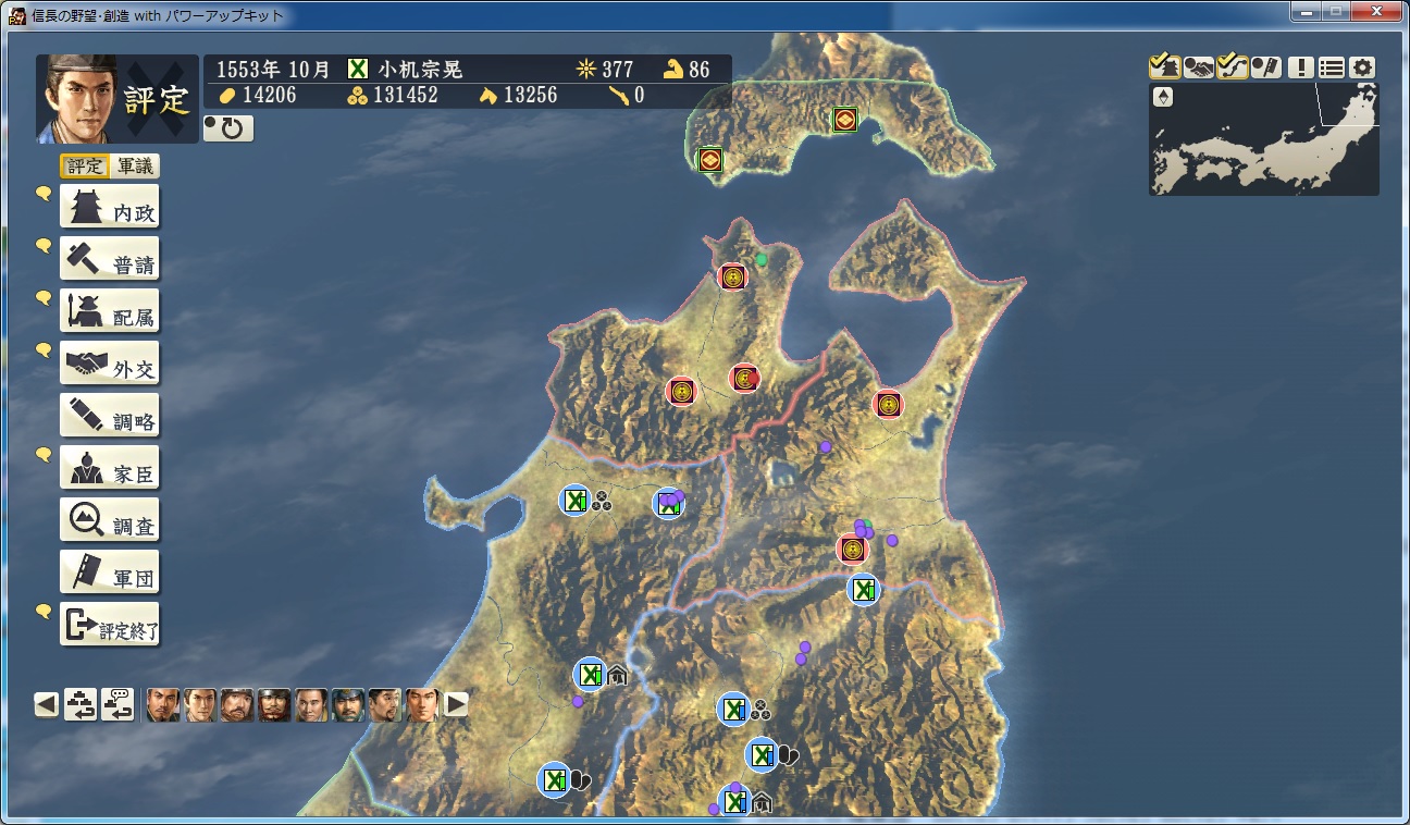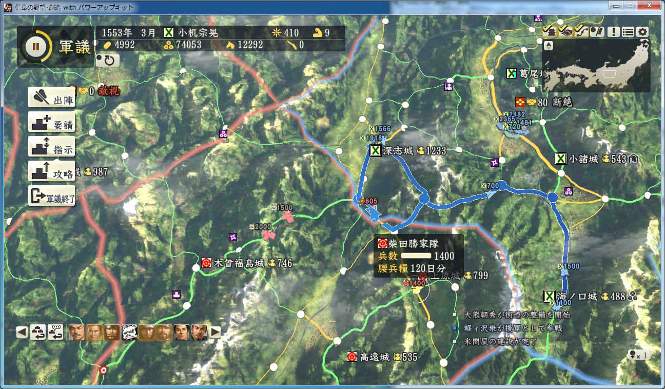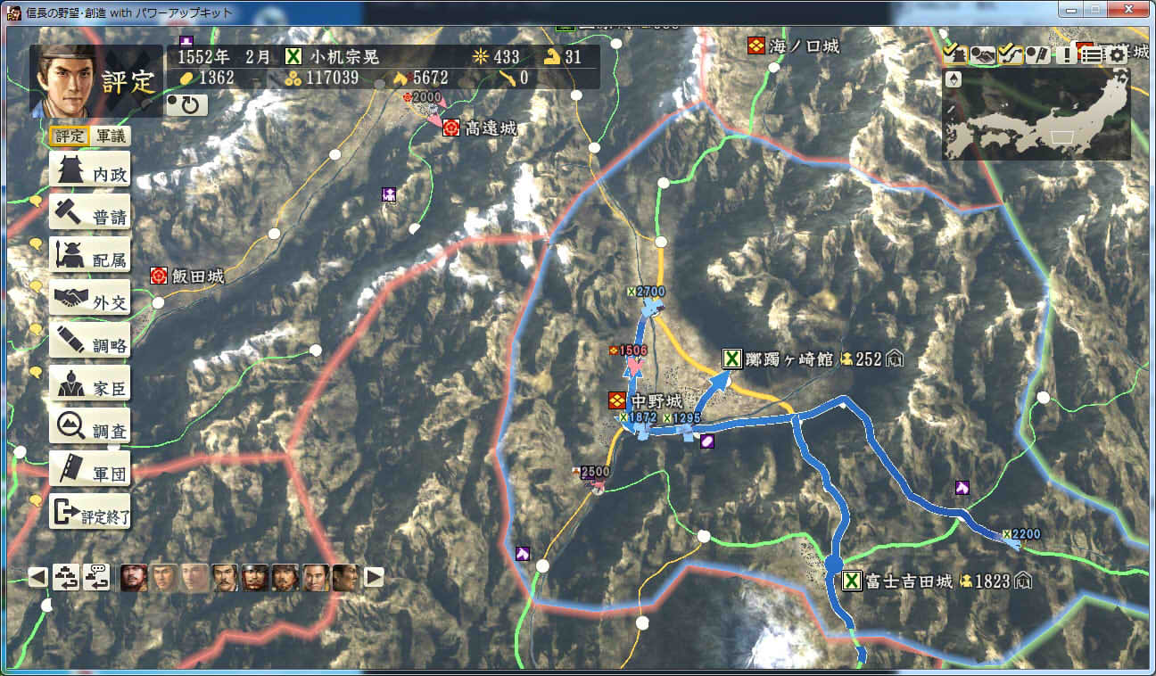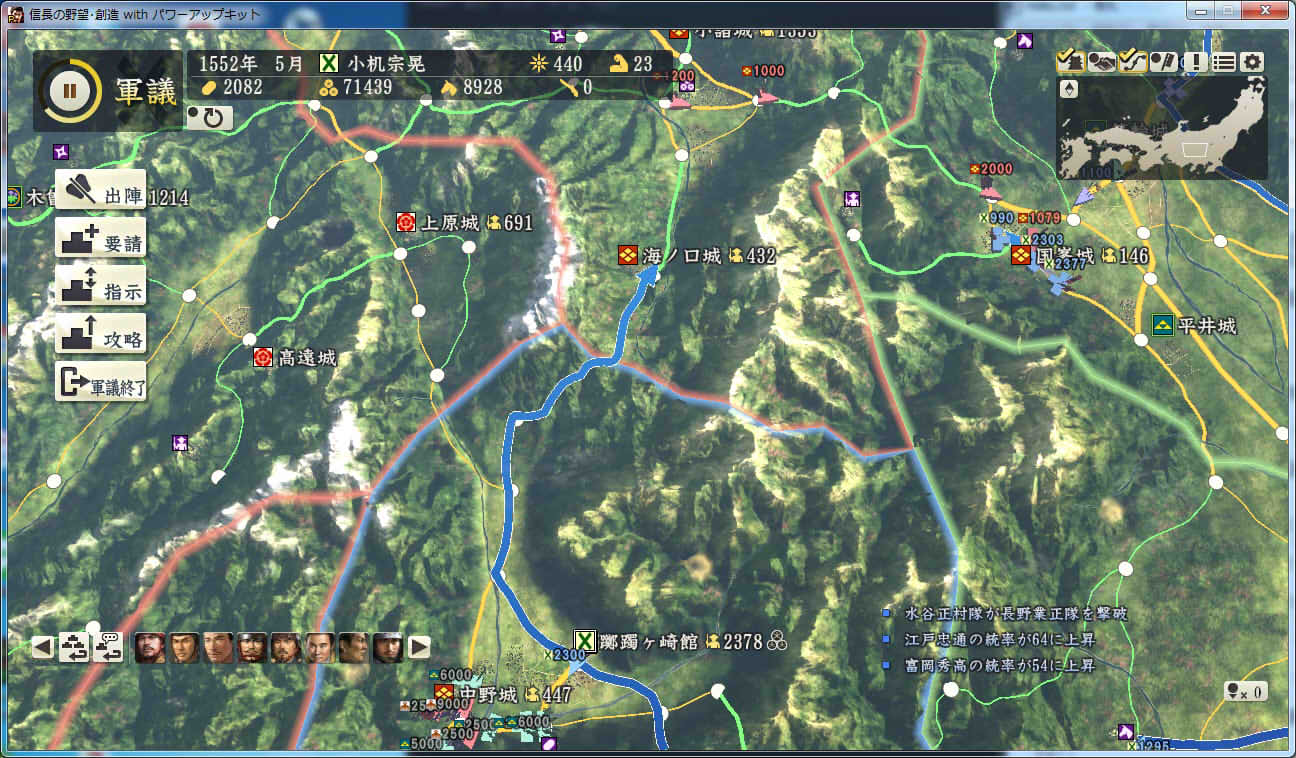 信長の野望 創造PK 新勢力プレイ 小机家 その9 北条領に進軍した武田軍。 これに黙っていないことにした小机家。 上杉牽制用に松代城に残した部隊を坂戸、飯山攻略に向かわせることに。 |